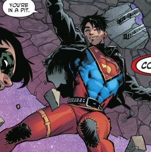 he was created by project cadmus using clark's kryptonian dna, intended as a replacement for superman who died fighting doomsday. artificially aged to his mid-teens and implanted with the equivalent of a high school education, superboy was set free by the a group of juveniles that stayed at project cadmus before he could be implanted with safeguards to control him. one of the boys gave him a leather jacket before he set out into the city, which he later customised